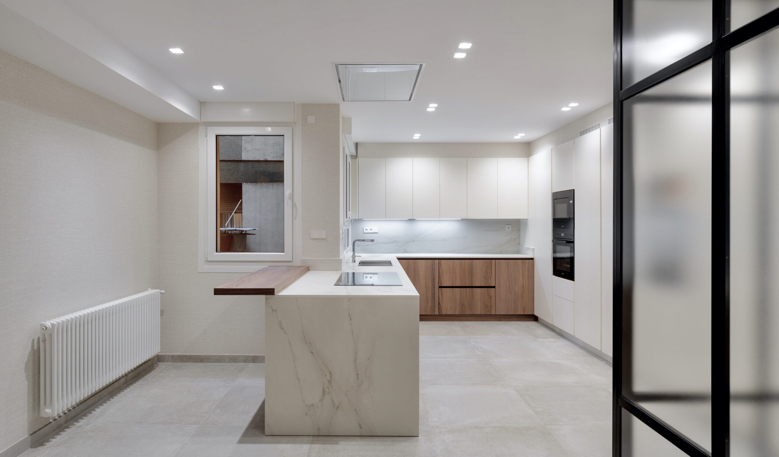 interiorismo y reformas bilbao Proyecto de reforma de vivienda en Estraunza, Bilbao En Urbana Interiorismo, creemos que dedicar tiempo al análisis y planificación de un proyecto de reforma integral es clave para obtener un resultado óptimo. Recientemente, hemos entregado una vivienda de 200 m² en el centro de Bilbao, diseñada por Antonia Vidal, que ha sido completamente transformada para hacerla más actual y funcional, atendiendo siempre a las necesidades de nuestros clientes. Rediseño de espacios: Transformación total La redistribución de la vivienda fue una de las piezas clave en este proyecto. Se optó por una transformación total de la distribución, que permitió maximizar la luminosidad y la funcionalidad de cada espacio, haciendo que la vivienda se adaptara a las nuevas necesidades de los propietarios. Salón-Comedor: Espacios abiertos y funcionales En la zona de salón-comedor, se diseñó una librería de obra a medida, que aporta un toque elegante y práctico al ambiente. Además, se incorporó un despacho de trabajo independiente, accesible a través de una puerta corredera que optimiza el espacio sin comprometer la estética. Dormitorio principal: Vestidor y baño de ensueño El dormitorio principal fue concebido como un verdadero refugio, con un amplio vestidor independiente que ofrece todo el espacio necesario para almacenamiento. Junto a este, se diseñó un baño completo con materiales de alta gama, que aporta una sensación de amplitud y confort. Pasillo y acceso a las habitaciones El diseño del pasillo en forma de «U» conecta todas las habitaciones de manera fluida, optimizando el uso del espacio y garantizando una circulación cómoda. Este pasillo también rodea el segundo baño, situado estratégicamente para dar servicio tanto a las habitaciones como a la cocina. Hall de entrada: Conectando espacios con estilo El amplio hall de entrada es un elemento fundamental en este proyecto. Desde aquí se accede directamente al salón y a la cocina, a través de un elegante cerramiento de hierro y cristal. Además, se incorporó un aseo de invitados, con una puerta giratoria, perfectamente integrada con la pared, que aporta un toque de diseño y funcionalidad. Cocina de ensueño: Diseño y funcionalidad de Alta Gama La joya de la casa es la amplísima cocina de la firma DOCA, que no solo destaca por su diseño moderno y sofisticado, sino también por su funcionalidad. La cocina cuenta con mobiliario de almacenaje completo, electrodomésticos integrados, una zona de comedor diario, una isla en península y una estancia contigua que alberga la lavadora/secadora, una pila y más almacenaje complementario. Es un espacio pensado para satisfacer incluso las necesidades más exigentes. Materiales y mobiliario: Elegancia y confort Los materiales utilizados en toda la vivienda, como la tarima en roble natural, el mobiliario de baño, los papeles pintados y los armarios combinan a la perfección con la gama cromática elegida para todo el hogar. Cada detalle fue seleccionado para crear una atmósfera armoniosa y acogedora. Proyecto de interiorismo y decoración llave en mano Como en todos nuestros proyectos, el diseño de decoración se llevó a cabo de forma simultánea con el proyecto de interiorismo y la reforma integral. ¿Estás pensando en una reforma integral? Si estás considerando reformar tu hogar, Urbana Interiorismo está aquí para ayudarte a hacer realidad tu visión. Trabajamos contigo en cada paso del proceso, desde el diseño hasta la ejecución, para crear el hogar de tus sueños. Contacto Urbana Interiorismo, es un estudio especializado en reformas de hogar, decoración y diseño de mobiliario. Urbana Interiorismo dispone de un Estudio y Showroom ubicados en la Calle Ercilla 20 en Bilbao.