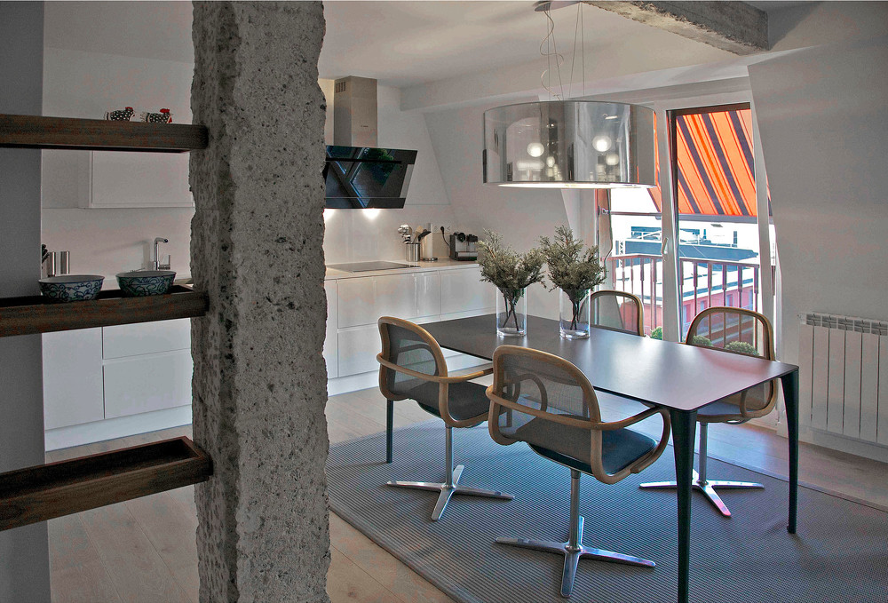 En la reforma de esta vivienda de construcción antigua, se aprovechó al máximo la estructura de hormigón existente, lo que permitió dar un carácter único a la zona de día, que incluye el salón y la cocina. Ambos espacios se abrieron completamente, creando un ambiente fluido y moderno. Esta disposición abierta no solo incrementa la luminosidad natural, sino que también mejora la sensación de amplitud y ligereza visual. Además, favorece la circulación del aire y optimiza la conexión entre las diferentes áreas del hogar.
