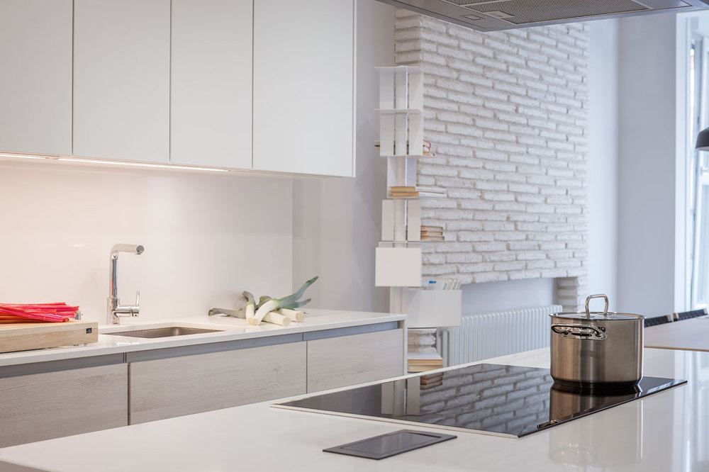 El primer paso del proyecto fue reordenar la cocina y los cuartos de baño de una forma más práctica y funcional, teniendo en cuenta las necesidades y el estilo de vida de los propietarios. Por ello, en Urbana hemos creado una zona de día donde la cocina, el comedor y el salón se han unificado en un único ambiente, cálido y bien iluminado.
