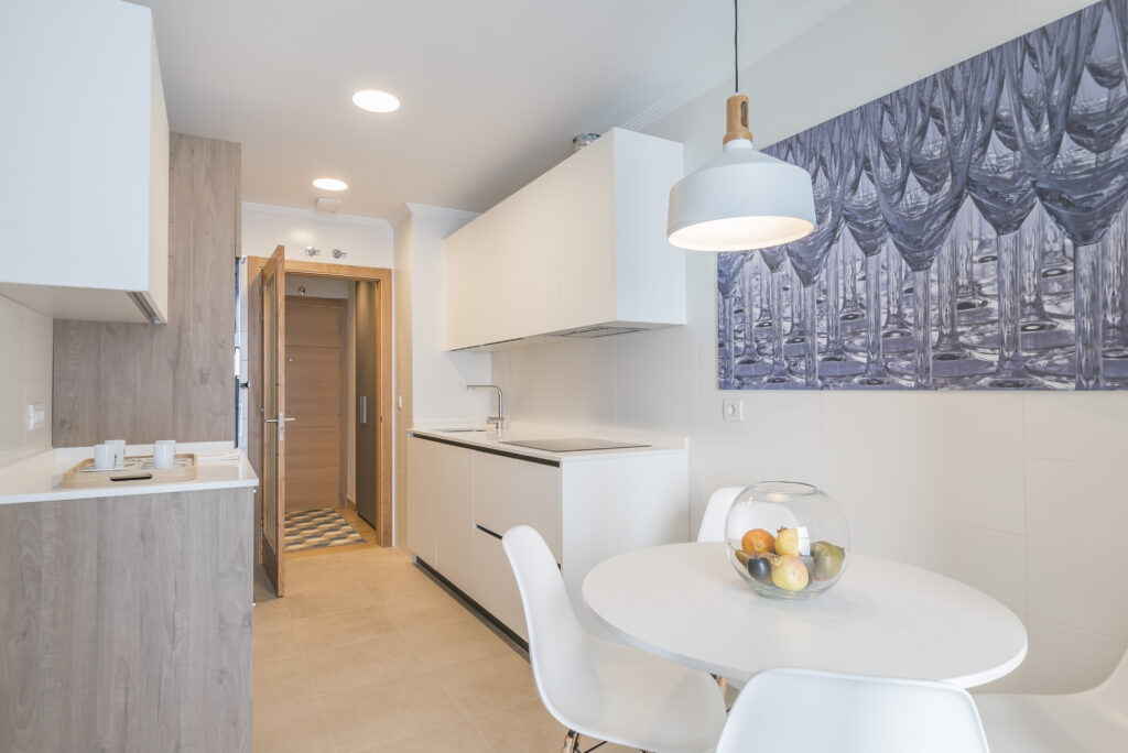 A continuación accedemos a la cocina, donde hemos mantenido ese estilo luminoso y acogedor que encontramos en toda la decoración de esta vivienda de Leioa en Bizkaia.