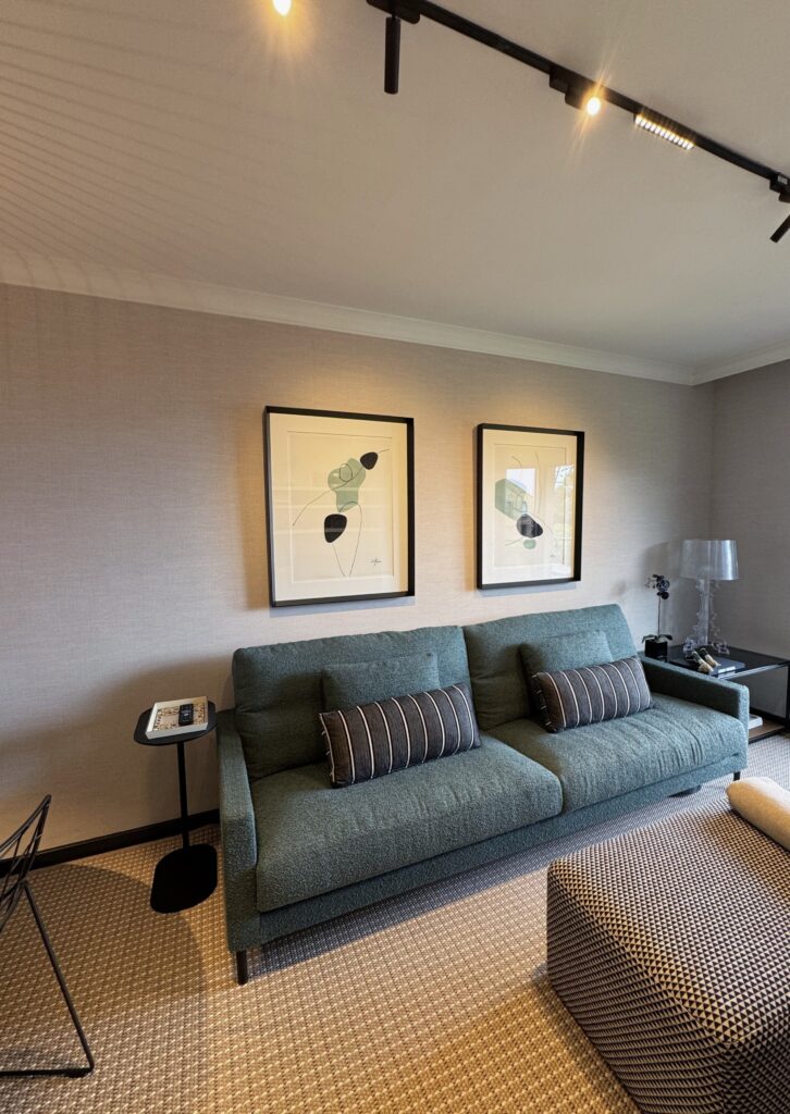 Los sofás verdes aportan un toque de color contrastando de forma equilibrada con los tonos neutros del entorno. Todo el mobiliario ha sido seleccionado para integrarse con naturalidad, creando un espacio cómodo y versátil para el día a día.