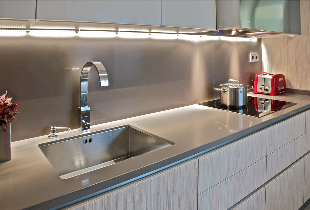Una cocina luminosa y con un toque de color