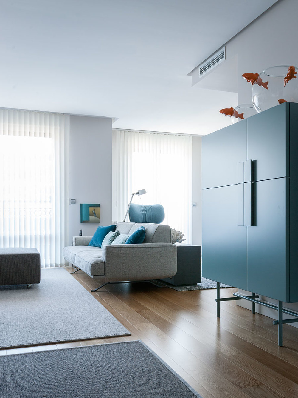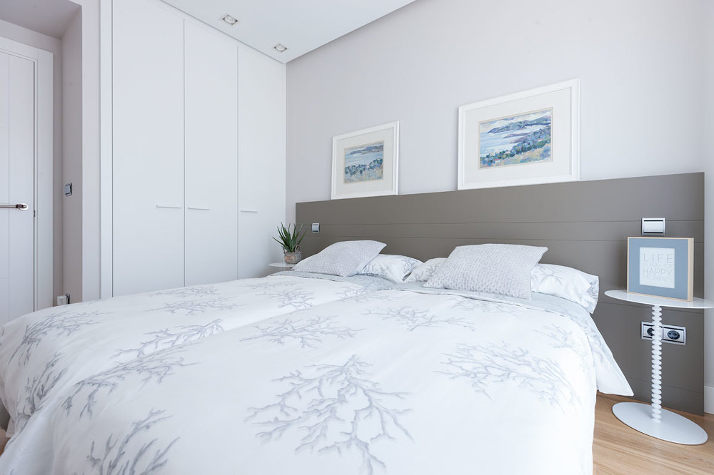 La decoración de esta vivienda en el centro de Bilbao se ha basado en líneas puras y diseños minimalistas con sutiles detalles marineros. De esta forma hemos logrado un ambiente atemporal en el que disfrutar de la vida en familia. Destaca especialmente un excelente trabajo de carpintería que es obra de la empresa especializada LANDA EBANISTERÍA.