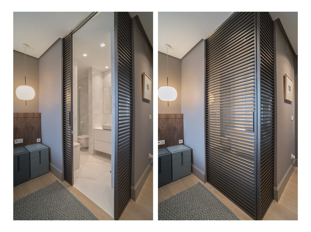 En primer lugar, el proyecto comenzó con una nueva redistribución de los espacios. Como los propietarios no necesitaban dos dormitorios, en Urbana optamos por ampliar el salón y replantear la ubicación de la cocina, que se reubicó en una zona más privilegiada. Además, abrimos dos ventanas en el único pasillo de la vivienda que añadieron luz y profundidad al espacio.