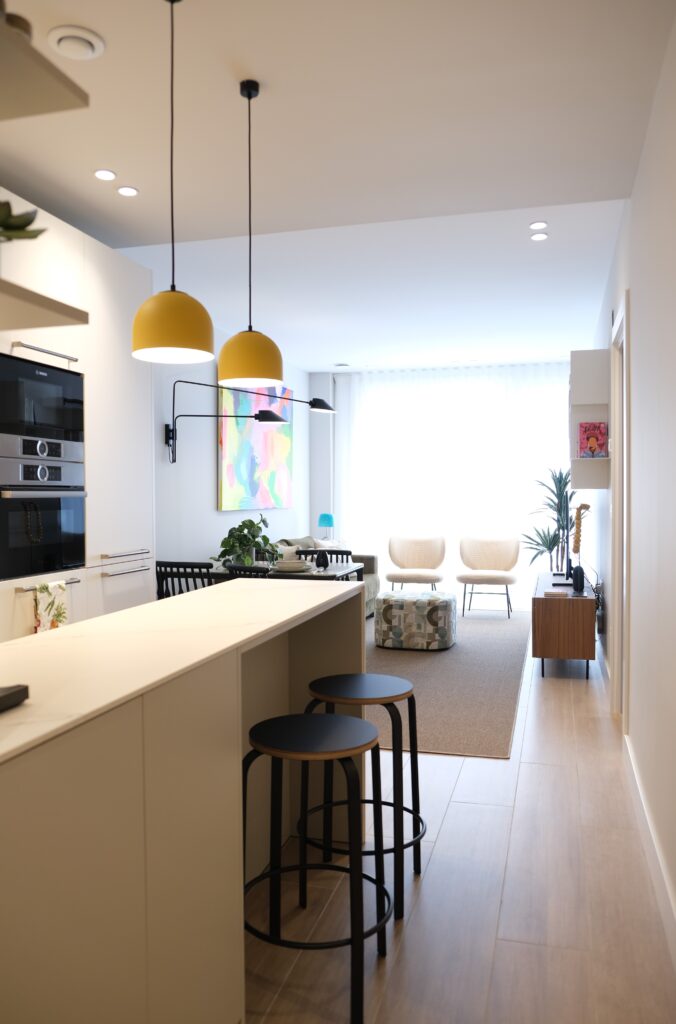 Gracias al diseño de la nueva distribución, la luz que penetra por los amplios ventanales envuelve todo el apartamento, logrando que la vivienda resulte mucho más acogedora y confortable.