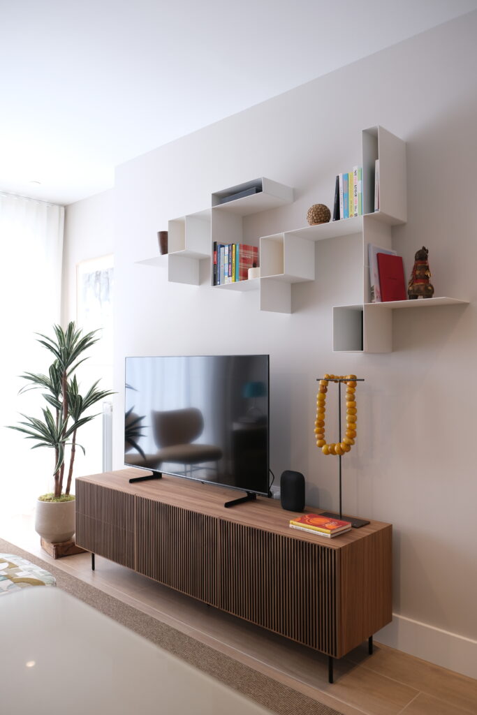Gracias a estos muebles de diseño, la habitación se transformó por completo y se consiguió unificar los distintos espacios, manteniendo una coherencia estética.