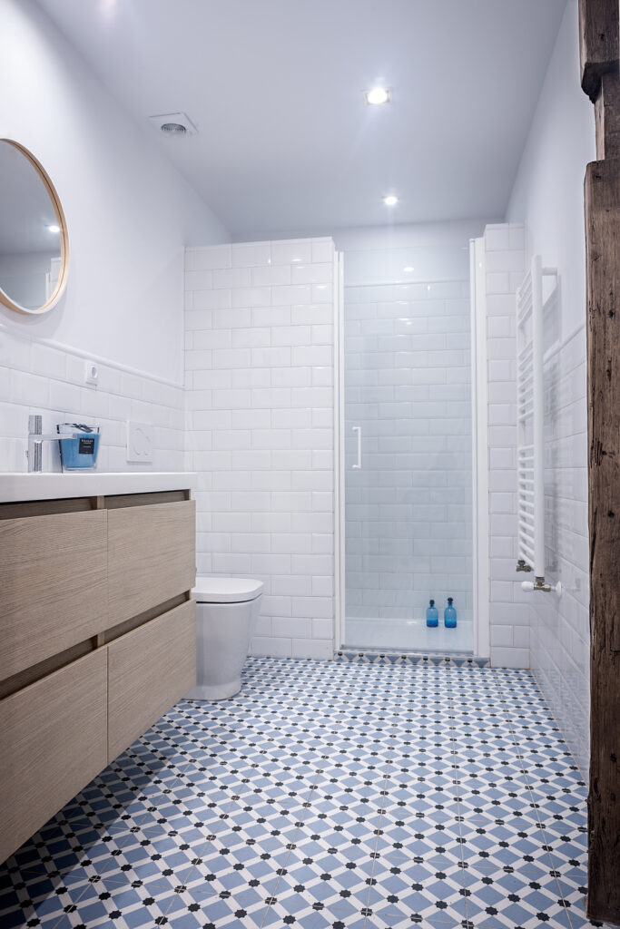 En el corazón del puerto de Lekeitio, esta segunda vivienda se ubica en un edificio con más de cien años de historia. Originalmente, toda la planta pertenecía a una única vivienda. Sin embargo, tras su segregación, surgió el reto de transformar esta nueva unidad en un hogar independiente, moderno y funcional. Para lograrlo, fue necesario incorporar desde cero todas las infraestructuras básicas, incluyendo sistemas de fontanería, electricidad y bajantes, que antes no existían en esta parte del inmueble.
