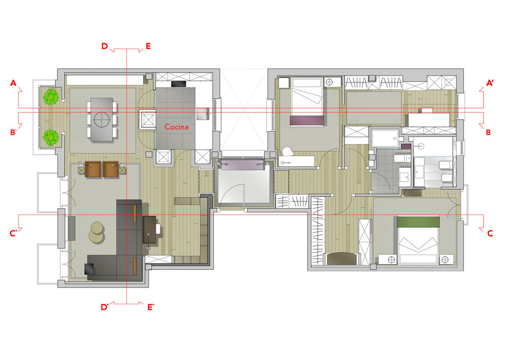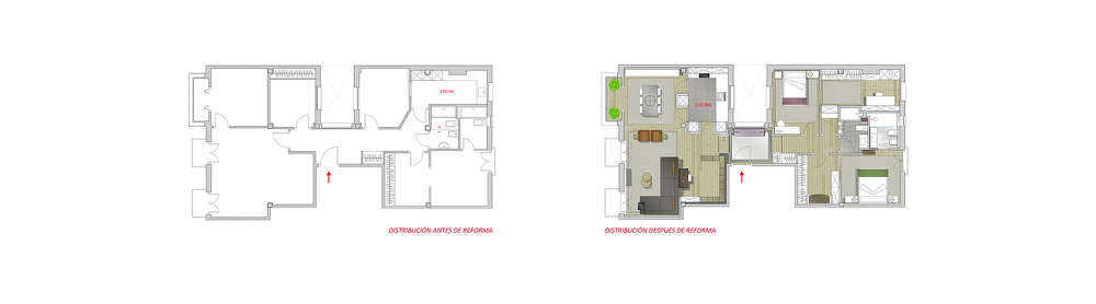Reorganización de la vivienda: Separación entre zona de día y zona de noche