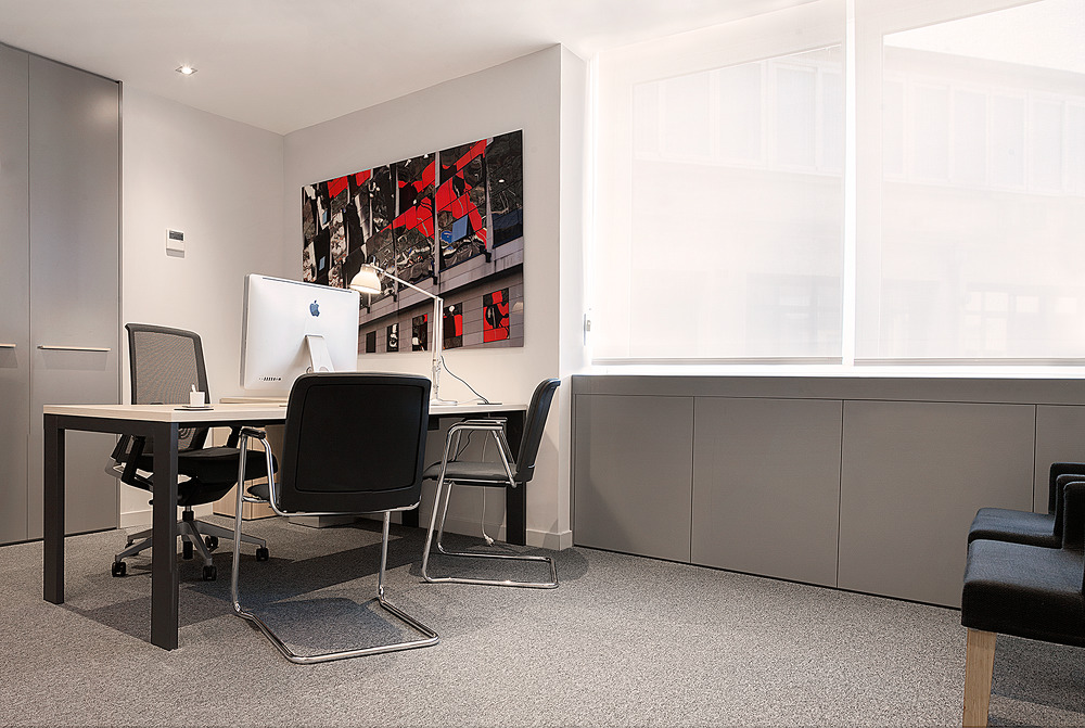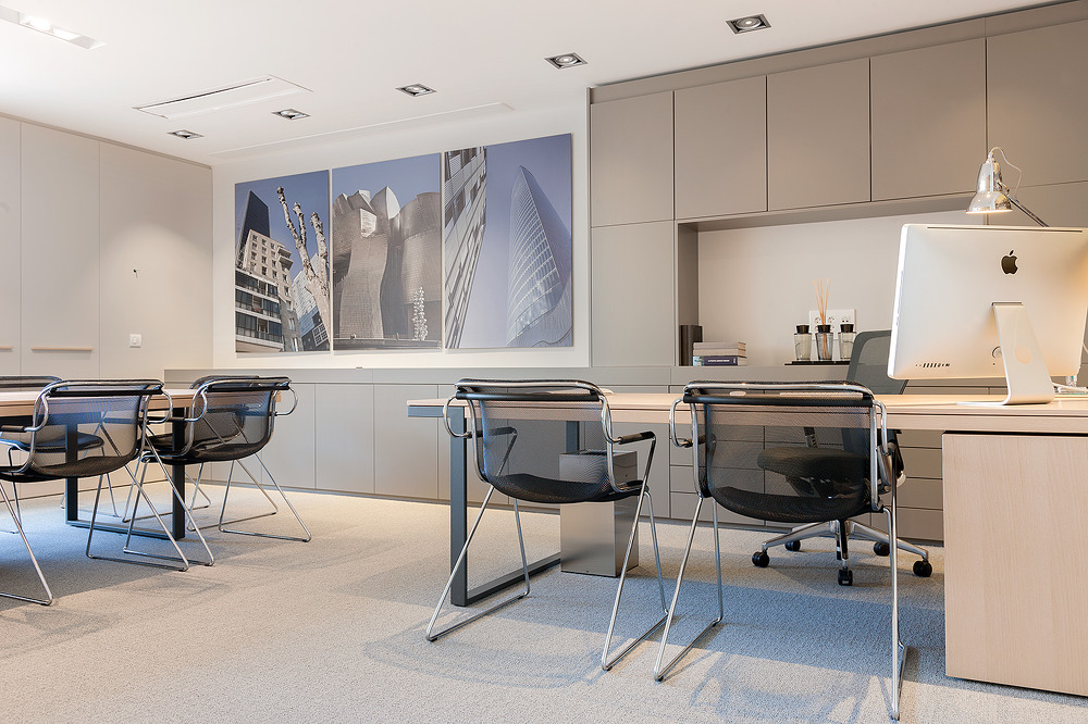 Nuestro equipo de interioristas en Bilbao trabajó de forma cercana y personalizada con el cliente, analizando sus necesidades específicas y objetivos empresariales. El resultado es un entorno de trabajo contemporáneo, caracterizado por líneas limpias, colores suaves y materiales innovadores que fomentan tanto la concentración como la interacción entre los empleados.