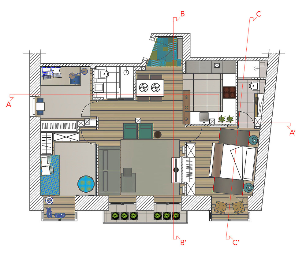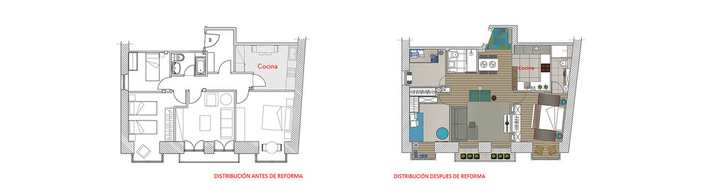 Con el objetivo de crear una sensación de mayor amplitud y ligereza visual, se optó por una distribución que favoreciera la apertura de los espacios. A pesar de esta transformación, se mantuvo, a petición del cliente, el número de estancias, adaptando la vivienda a sus necesidades actuales sin perder la estructura original. Además, se incorporó un baño adicional en la habitación principal, mejorando la comodidad y funcionalidad de esta zona privada.